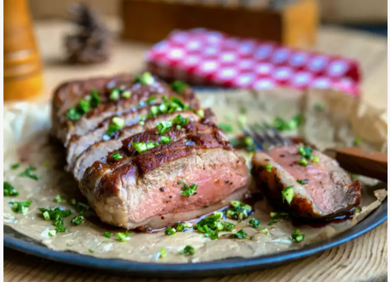 Magret d'agneau (faux-filet) à la poêle, ail et persil